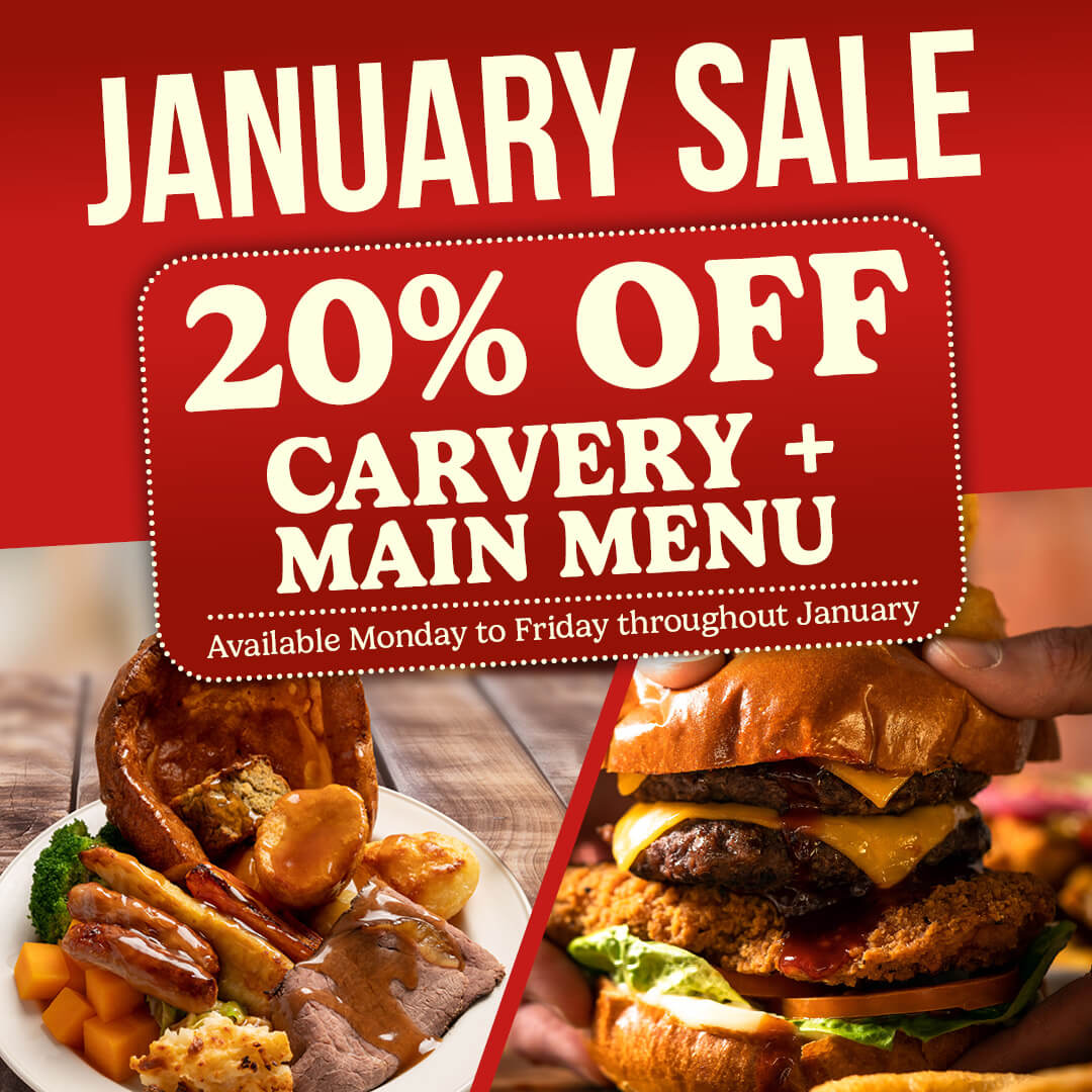 We’re helping make January feel a little lighter. From Monday 5th January, you can enjoy 20% off our carvery and main courses from our main menu every time you dine with us throughout the month.